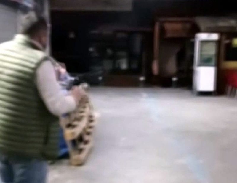 Yanında getirdiği tüfekle iş yerine defalarca ateş açan şahsın saldırı anı cep telefonu kamerasıyla saniye saniye kaydedildi.