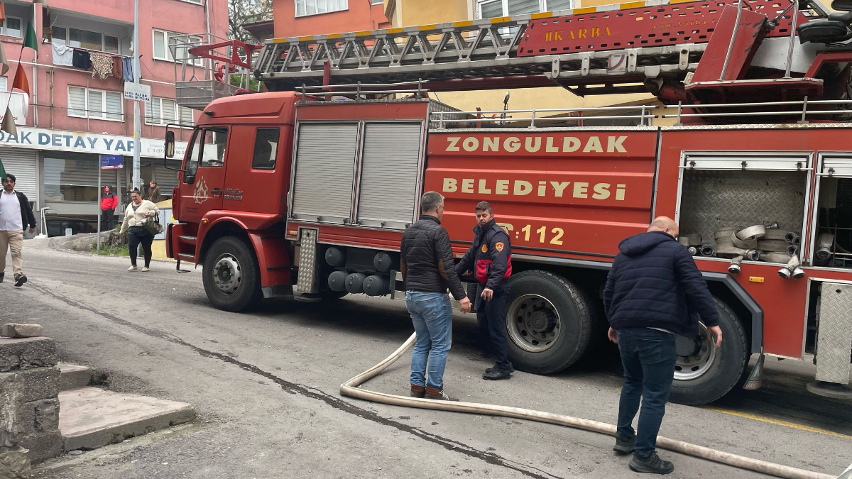 Zonguldak'ta görme engelli Ahmet Çakmak'ın yaşadığı tek katlı gecekondu evde, elektrikli şofbenden yangın çıktı.