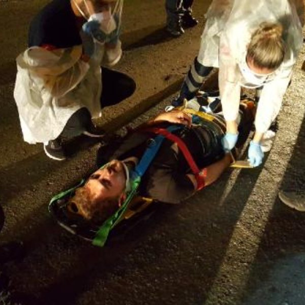 Yerde sürüklenen Atakan Oral, yaralandı. Sağlık ekiplerinin müdahalede bulunduğu Oral, gözyaşlarına boğuldu.