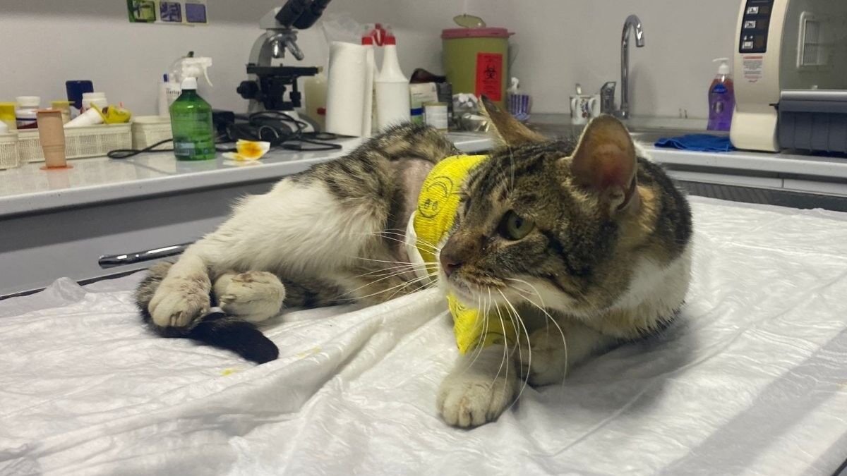 Yaralanan kediyi ise bir hayvansever buldu.