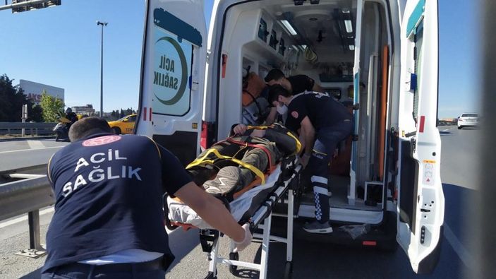 Avcılar Köprüsü Firüzköy Bulvarı istikametinde meydana gelen kazada, motosiklet savrularak sürücü ile birlikte bariyerin altına girdi.