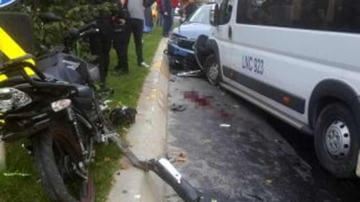 Yaşanan kovalamaca sonucu ters şeritten gitmeye çalışan kapkaççıların motosikleti, servis aracına çarptı. Zanlıları takip eden H.K'nin kullandığı araç da duramayarak kazaya karıştı.