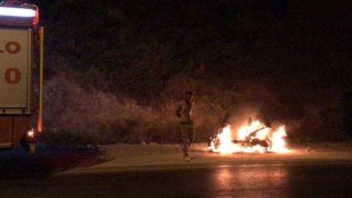 Motosikleti arıza yapınca sinirlenip ateşe verdi