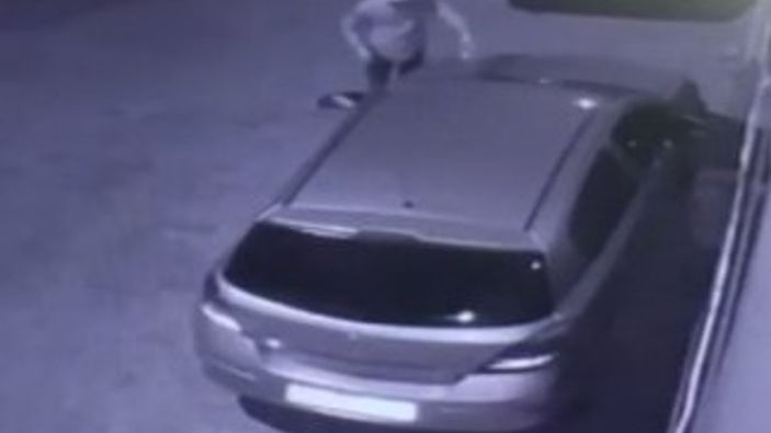 Otomobili üzerine benzin döküp yaktılar VİDEO