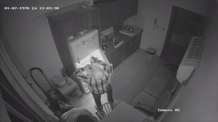Bu arada bir güvenlik kamerası görüntüsünde iki hırsızın iş yerine mutfak penceresinden girdiği görüldü.