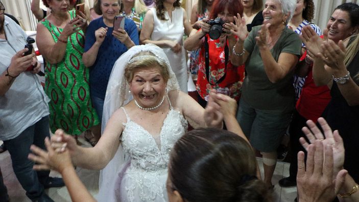 Yaşı ilerleyen Topbaş, 2023'te yerleştiği huzurevine arkadaşları ve huzurevi çalışanlarıyla sohbet ederken, hiç evlenmediği için beyaz gelinlik giyememekten yakındı.