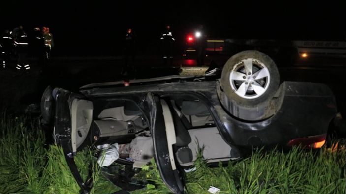 Hakimiyeti kaybolan otomobil önce elektrik direğine çarptı ardından takla atarak tarlaya devrildi.