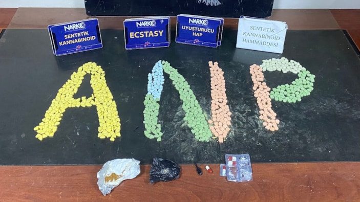 Baskın sırasında evin çeşitli bölgelerinde 704 adet uyuşturucu hap, 3 gram amfetamin ve 2 gram bonzai bulundu.