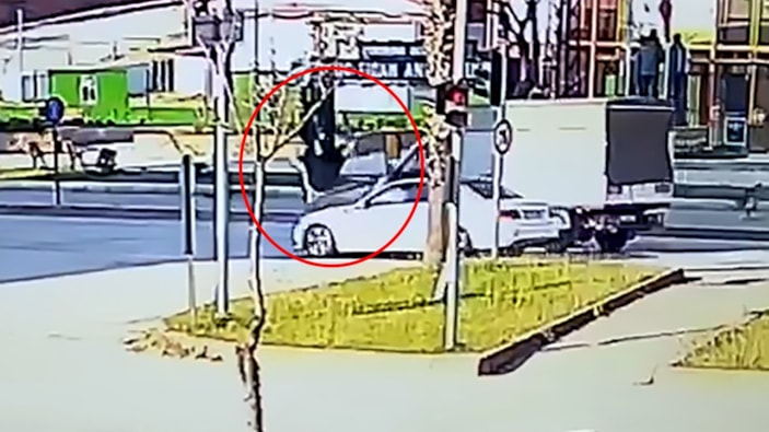 Kaza anı, bir iş yerinin güvenlik kamerasına kaydedildi.