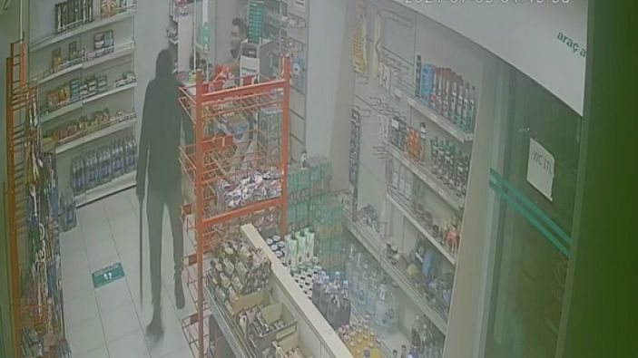 Montunun koluna gizlediği kılıcı çıkaran şüpheli, kasiyer Yusuf D.’yi (20) tehdit edip, kasadaki paraları vermesini söyledi. Yusuf D. ise kasadaki 900 TL’yi şüpheliye verdi.