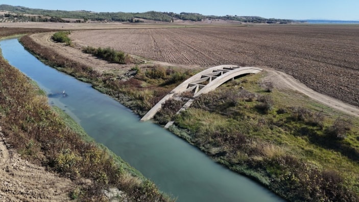 Çakıt Nehri'nin yatağı değiştiği için nehrin kenarında duran Alman Köprüsü, drone ile görüntülendi.