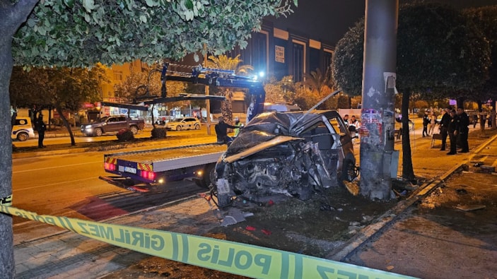 Adana'da hafif ticari aracın tabela direğine çarpması sonucu 1 kişi hayatını kaybetti, 1 kişi ağır yaralandı.