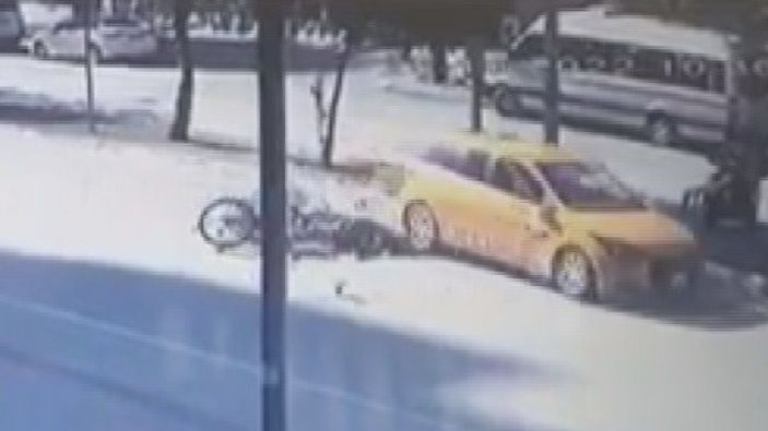 Adana'da taksi caddedeki bisikletliye çarptı VİDEO