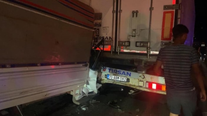 Adana'nın Pozantı ilçesi Tarsus-Adana-Gaziantep Otoyolu'nun Akçatekir rampası mevkiinde sürücüsünün kimliği henüz belirlenemeyen kamyonet, tıra arkadan çarptı.