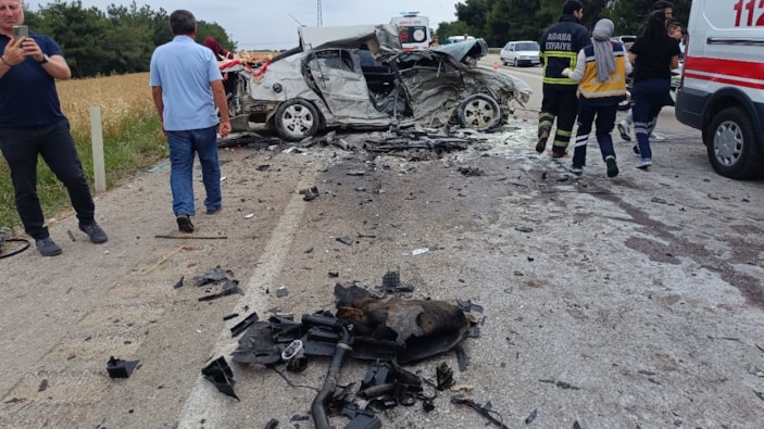 Adana’da korkunç trafik kazasında araçlar hurdaya döndü.