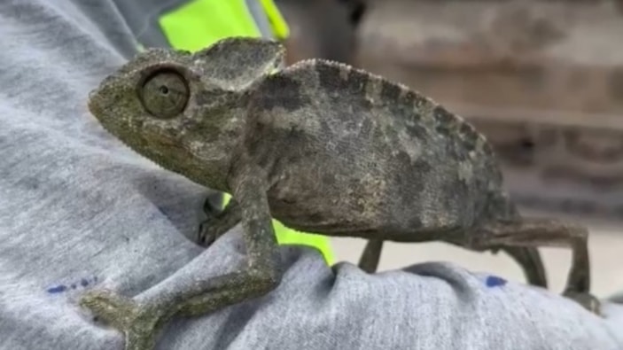 Adana'da yıkım işlemi sırasında binada bukalemun bulundu
