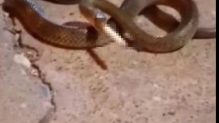 Sigaradan kurtulmak için çırpınan yılanın görüntülerini, cep telefonlarının kameralarıyla görüntüleyerek sosyal medyada paylaştı.