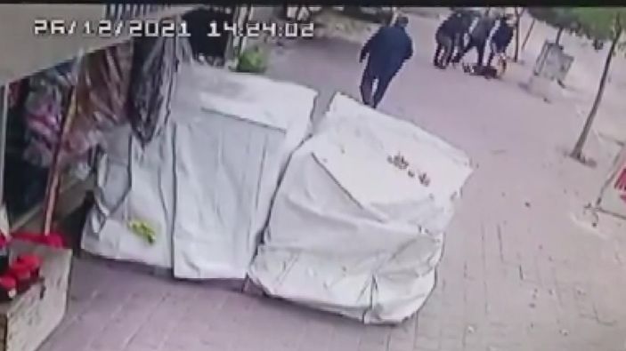 Başından ve vücudunun çeşitli yerlerinden yaralanan Veysel A. kanlar içerisinde yere yığılırken, 4 zanlı şahsa vurmaya devam etti. Dayakçı kocaya linç girişiminin ise güvenlik kamerası kayıtları ortaya çıktı.