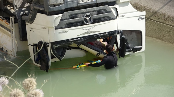 Daha sonra olay yerine gelen Adıyaman İl Emniyet Müdürlüğüne bağlı polis dalgıç ekipleri vinç yardımıyla kamyonun kaldırılmasıyla sürücüye ulaştı.