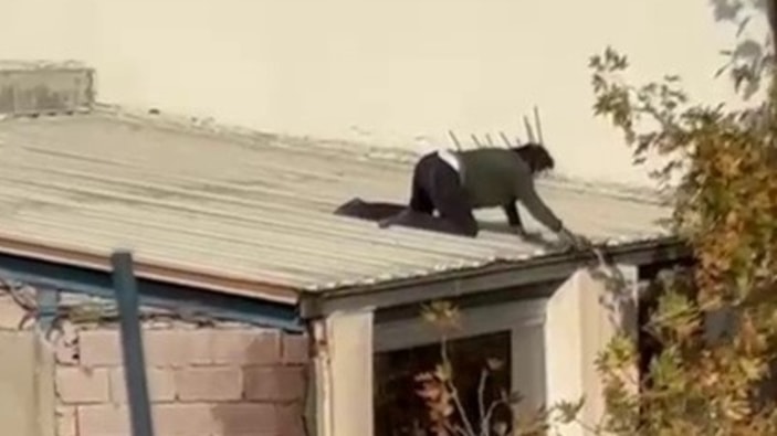 HİÇBİR ÖNLEM ALMADAN ÇATIYA ÇIKTI