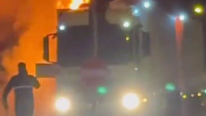 Adıyaman'da seyir halindeki tırda yangın çıktı