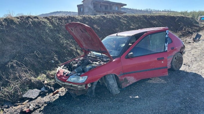 Çukura giren otomobilin sürücüsünün direksiyon hakimiyetini kaybetmesi sonucu araç, yoldan çıkarak şarampole yuvarlandı.