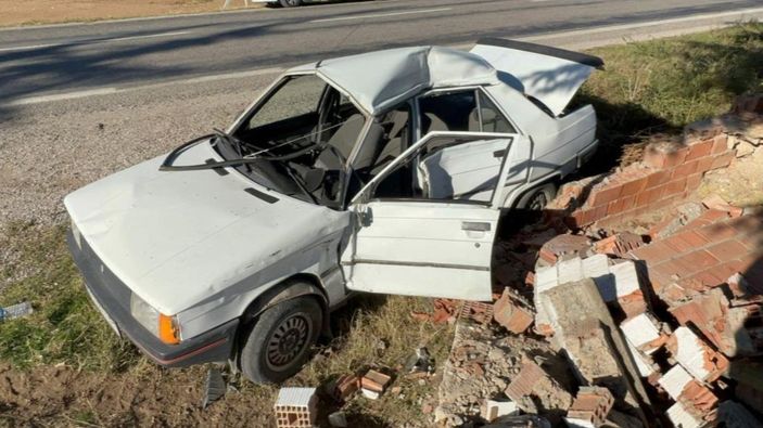 Dengesini kaybeden sürücü kontrolden çıktı ve araç savrulup yol kenarındaki bir evin duvarına çaptı.