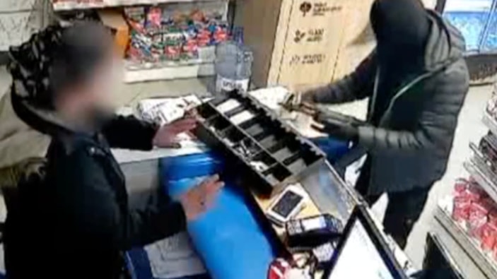 Afyonkarahisar'ın Dinar ilçesindeki akaryakıt istasyonu marketine bir şüpheli siyah mont, kar maskesi, elinde uzun namlulu silahla girdi.
