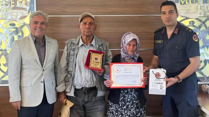 Yaşamları boyunca 1 kez hacca, 5 kez de umreye giden Güneş çiftine, Jandarma Asayiş Vakfı Genel Müdür Yardımcısı Atilla Önal tarafından İlçe Jandarma Komutanlığı'nda teşekkür belgesi ve şilt takdim edildi.