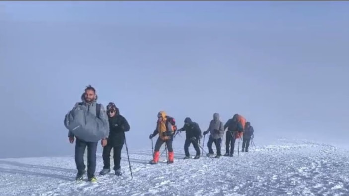 Gece boyunca soğuk hava ve fırtınaya göğüs geren dağcılar, sabahın ilk ışıklarıyla zirve yolculuğuna devam ediyor. Buzullar üzerinde ilerleyen dağcılar, zorlu bir mücadele sonrasında zirveye ulaşmanın mutluluğunu yaşıyor.
