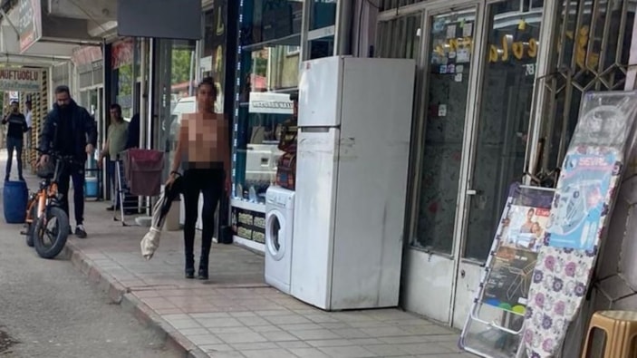 Ağrı’nın Doğubayazıt ilçesinde çıplak halde bulunan S.A. isimli kadın, kalabalığa aldırış etmeden ilçe merkezinde yürümeye başladı.