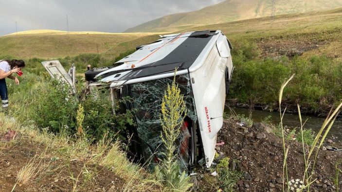 Ağrı'da öğretmenleri taşıyan otobüs devrildi VİDEO