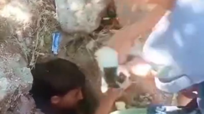 Çocuklar, sesin daha önce foseptik olarak açılan ancak kullanılmayan üzeri taşlarla kapalı çukurdan geldiğini belirledi.