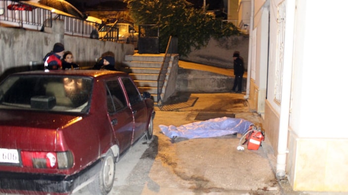 Binanın önünde Cuma Sağlam’ı kanlar içinde bulan eşi, durumu 112 Acil Çağrı Merkezi’ne bildirdi.