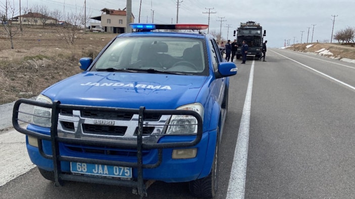 Yangın araç sürücüsü ve yoldan geçen diğer araç sürücülerinin müdahalesiyle söndürülürken, olay yerine gelen jandarma ekipleri yolda güvenlik önlemi aldı.