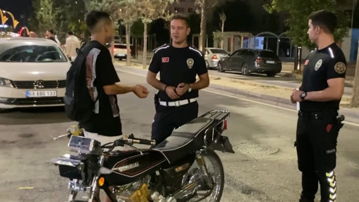 Aksaray'da plakasız motosikletle yakalanan sürücü: Yakından çekme çirkin çıkıyorum