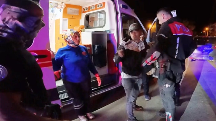 Yüzünden ve vücudunun çeşitli yerlerinden hafif yaralanan genç sürücü kendisini tedavi etmek isteyen sağlık personeline tedavi olmak istemediğini söylerken, polis ekipleri de yaralı sürücüyü ambulansa binmesi için ikna etmeye çalıştı.