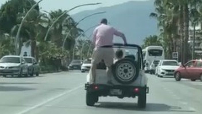 Güvenlik kurallarını hiçe sayarak araç üzerinde akrobatik hareketler yapan turiste tepki gösteren bir vatandaş, "Avrupa’dan gelmişler ama yaptıkları işe bak" dedi.