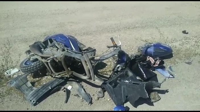 Amasya'da meydana gelen kazada, motosikletin paramparça olduğu görüldü.