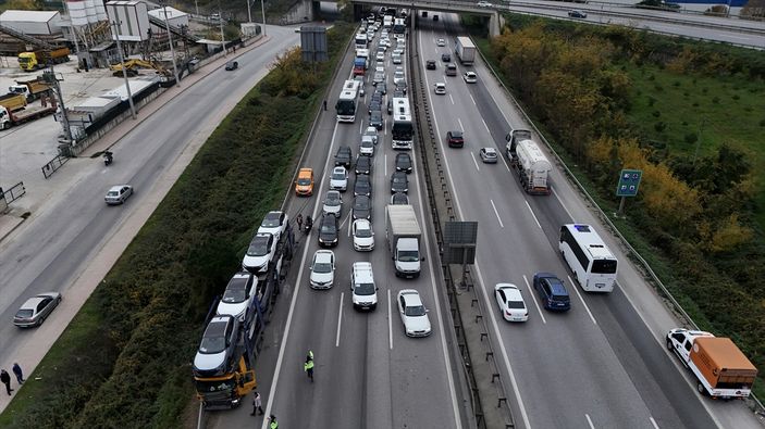 Anadolu Otoyolu Sakarya geçişinde SUV tarzı araç yüklü tır ile çarpışan nakliyat kamyoneti devrildi. Kazada yaralanan olmazken, otoyolun Ankara istikametinde kilometrelerce araç kuyruğu oluştu.
