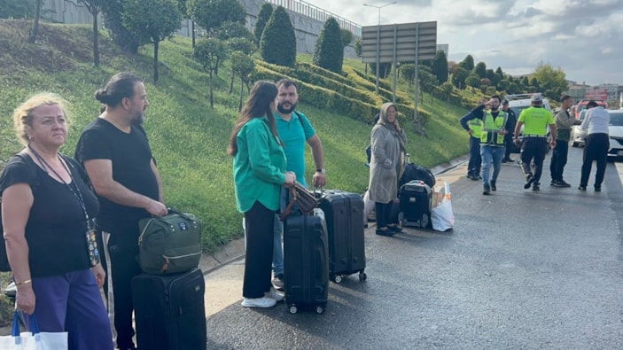 Anadolu TEM Otoyolu'nda trafik kazası! Vatandaşlar valizle yol kenarında bekledi...