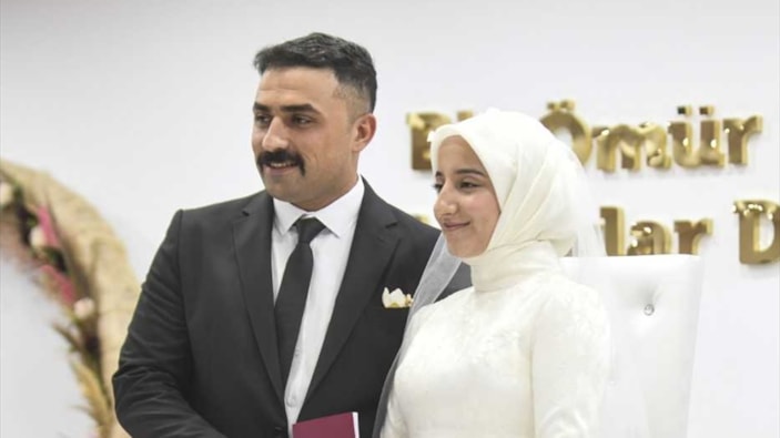 Ankara İtfaiye eri Cebrail Sarsılmaz ile 6 Şubat 2023'teki depremlerde Kahramanmaraş'ta Müjde Apartmanı'nda enkaz altından kurtardığı Sinem Kaynak'ın nikahı, Aşık Veysel Nikah Salonu'nda kıyıldı.