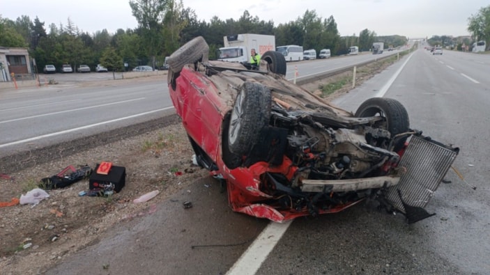 Ankara'nın Elmadağ ilçesinde, T.Y. idaresindeki otomobil, sürücüsünün kontrolünü kaybetmesi sonucu taklalar attı.