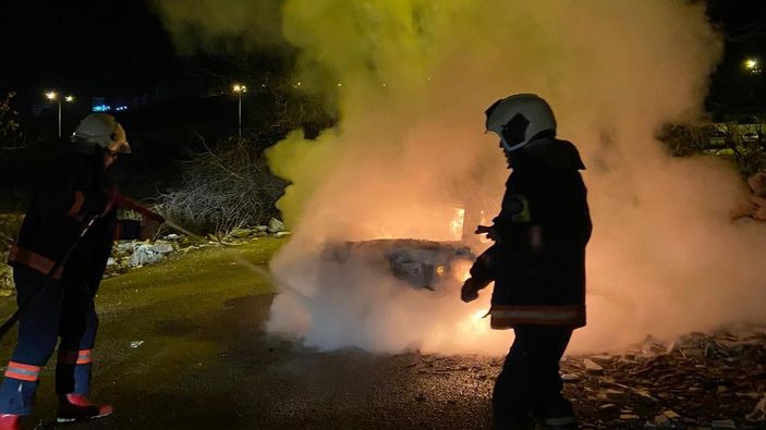 İhbar üzerine olay yerine gelen itfaiye ekipleri yangını söndürürken otomobil kullanılamaz hale geldi.