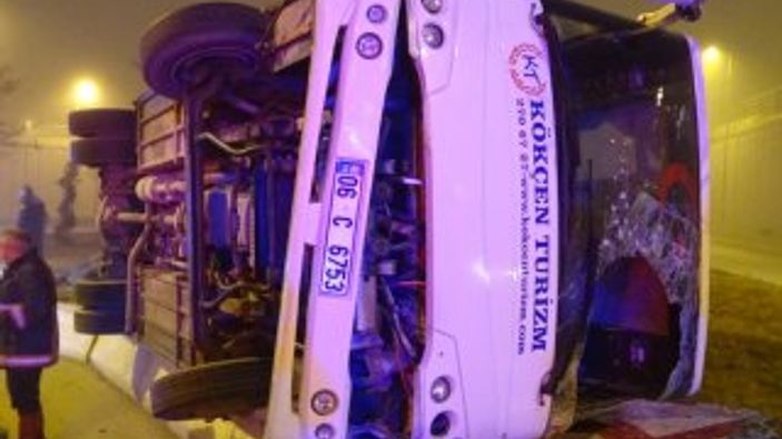 Ankara Sincan ilçesi Ayaş Yolu Bulvarı Fatih Mahallesi’ne dönüş varyantı içerisinde akşam saatlerinde, Ahmet Ö. yönetimindeki 06 C 6753 plakalı işçileri evlerine götüren servis, gizli buzlanma nedeniyle kayganlaşan yolda sürücüsünün direksiyon hakimiyetini kaybetmesi sonucu devrildi.