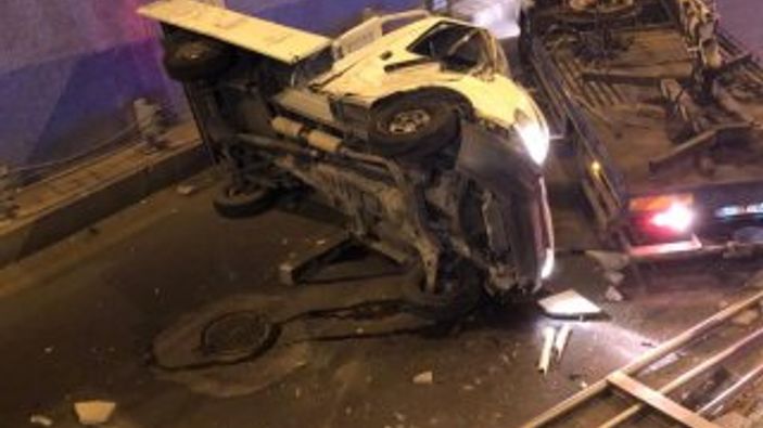 Bariyerleri aşan kamyonet, yaklaşık 4 metre yükseklikten tünel girişine uçtu. Kazanın etkisiyle yan yatan kamyonetin sürücüsü Daşkıran ile yanında bulunan yolcu Mustafa Anıl Özata kazada yaralandı.