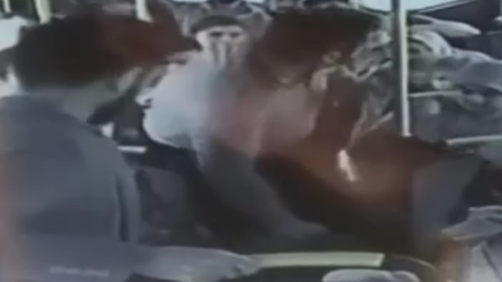 Elmadağ ilçesinde bir esnaf kendisini 7 yıl önce dolandırdığını iddia ettiği şahsı işlettiği markete alışverişe gelince hatırladı. Otobüse binen şahsı takip eden esnaf yanında bulunan bir kişiyle birlikte, şahsı oturduğu yerden kaldırıp darbetti. O anlar ise güvenlik kamerasına saniye saniye yansıdı.