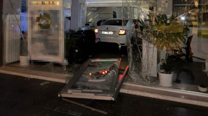 Sabah saatlerinde sürücüsünün direksiyon hakimiyetini kaybettiği otomobil, banka şubesine girdi. Sürücü olay yerinden kaçarken, kaza anı güvenlik kamerasına yansıdı.
