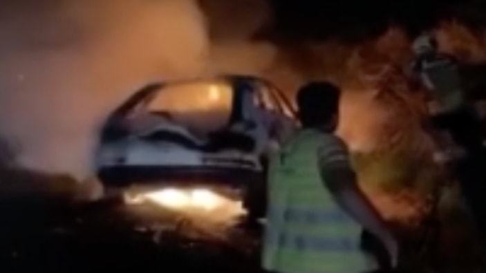 Ankara'da köpeğe çarpmamak için şarampole uçan otomobil patladı