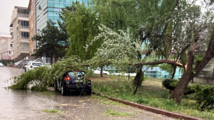 Mamak Asım Gündüz Caddesi'nde de bir ağacın yaklaşık 3 metre uzunluğundaki dalı kaldırıma devrildi. O sırada yolda kimsenin olmaması can kaybı veya yaralanmanın önüne geçti. Ankara'da olumsuz hava koşullarının gece saatlerine kadar sürmesi bekleniyor.